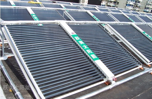 2、采用全玻璃真空管太阳能集热器,可以在平屋顶大面积安装。代替锅炉使用。