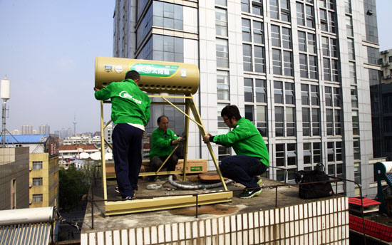 在现场,皇明南京分公司蔡经理亲手向李女生赠送一台热水器和证书等,几位工人将旧的热水器从屋顶拆下来,当场又将新的热水器安装接通。蔡经理向大家介绍,皇明太阳能成立18年来,始终致力于提高消费者的热水生活品质,持续升级太阳能技术和产品,在世界太阳能产业处于领先地位,目前皇明在全球范围内已拥有5000多万老用户,为回馈老用户,自2013年9月10日至12月31日,在全国举办“同护蓝天白云 共享领航18年—皇明太阳能向18年老用户免费赠机”活动,1995年前购买皇明太阳能的老用户均可报名参加,将免费获得皇明最新“UTAC抗垢腐”系列太阳能。此外皇明还将推出购机“内胆8年包换”、“真空管延保3年”等一系列活动。
